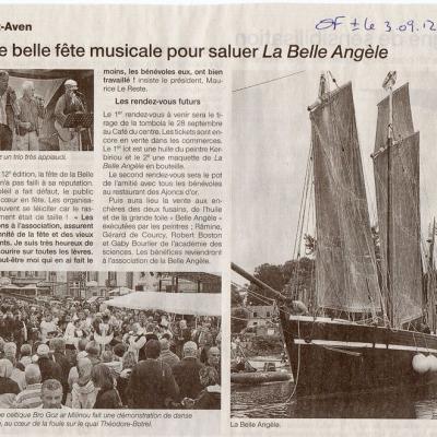 En effet, 1er Septembre 2012, douzième fête de la Belle Angèle; comme le temps passe vite!.